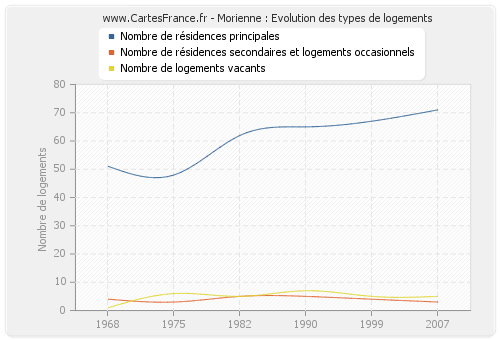 En 2007 les logements de Morienne étaient composés de 71 résidences principales, 3 résidences secondaires ou occasionnels ainsi que 5 logements vacants.