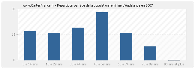 - Femmes de 45 à 59 ans habitant Audelange : 28