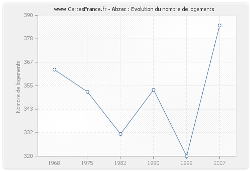 Historique du nombre de logements d'Abzac de 1968 à 2007 :