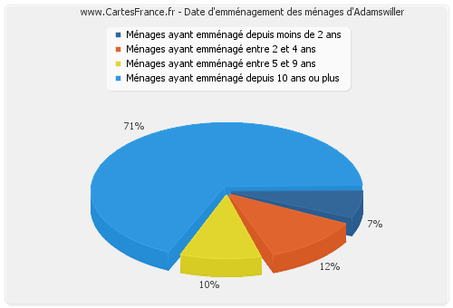 - Nombre de ménages d'Adamswiller ayant emménagé depuis moins de 2 ans : 11