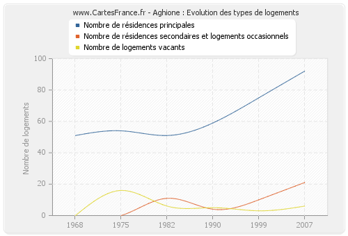 - Nombre de résidences principales d'Aghione en 2007 : 92