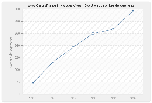 Historique du nombre de logements d'Aigues-Vives de 1968 à 2007 :