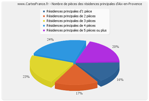 - Nombre de résidences principales d'Aix-en-Provence de quatre pièces : 16 677