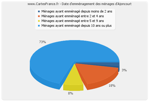 - Nombre de ménages d'Ajoncourt ayant emménagé depuis 10 ans ou plus : 29