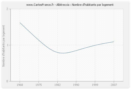 - Nombre d'habitants moyen par logement d'Albitreccia en 2007 : 1,09