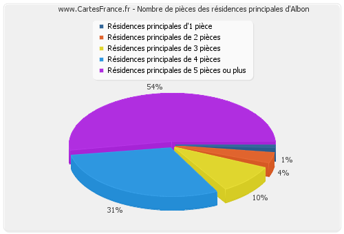 - Nombre de résidences principales d'Albon de cinq pièces et plus : 363