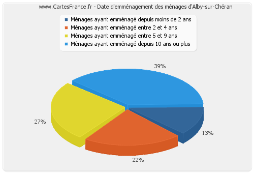 - Nombre de ménages d'Alby-sur-Chéran ayant emménagé depuis 10 ans ou plus : 285