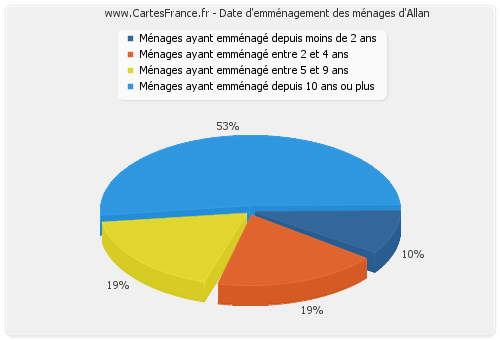 - Nombre de ménages d'Allan ayant emménagé depuis 10 ans ou plus : 320