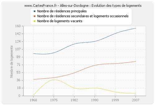 - Nombre de résidences principales d'Alles-sur-Dordogne en 2007 : 155