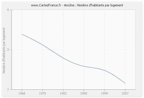 - Nombre d'habitants moyen par logement d'Ancône en 1968 : 3,39