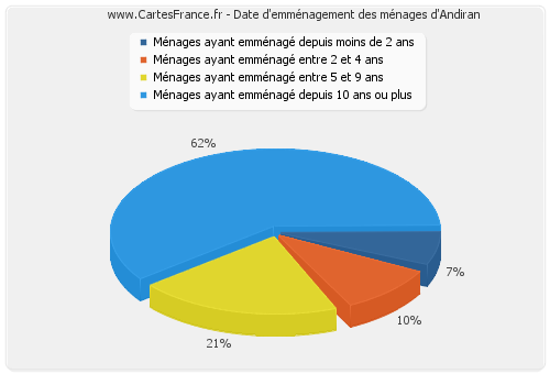 - Nombre de ménages d'Andiran ayant emménagé depuis 10 ans ou plus : 62
