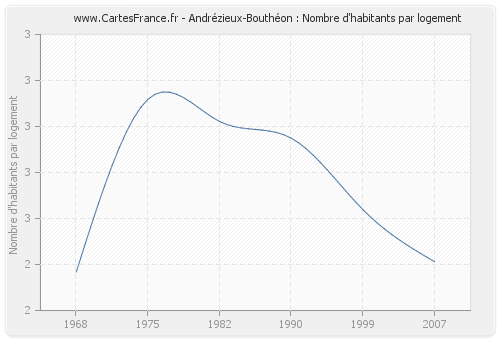 - Nombre d'habitants moyen par logement d'Andrézieux-Bouthéon en 1968 : 2,40
