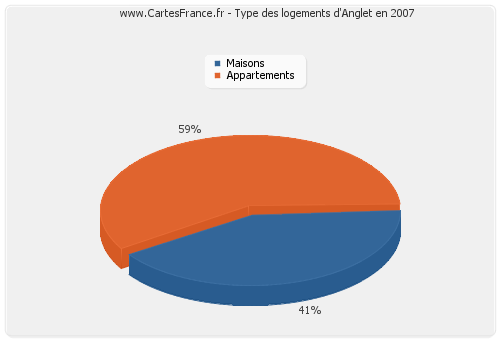 En 2007 les logements d'Anglet étaient composés de 18 346 résidences principales, 2 898 résidences secondaires ou occasionnels ainsi que 536 logements vacants.