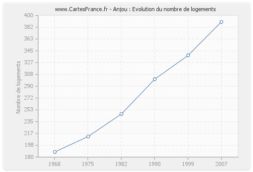 Le nombre de logements d'Anjou était de 390 en 2007, 338 en 1999, 301 en 1990, 247 en 1982, 212 en 1975 et 188 en 1968.