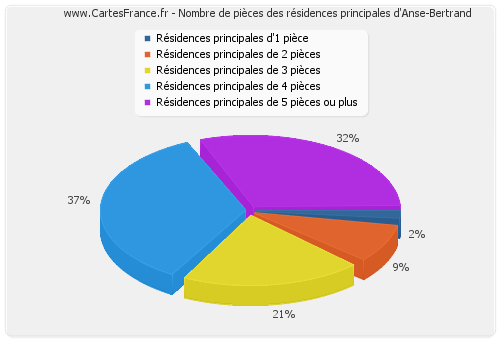 La Ville d'Anse-Bertrand recensait la même année un total de 1 730 ménages. Les graphiques suivants présentent les statistiques d'habitation de ces ménages d'Anse-Bertrand.
