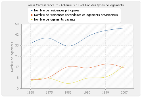 - Nombre de résidences principales d'Anterrieux en 2007 : 47
