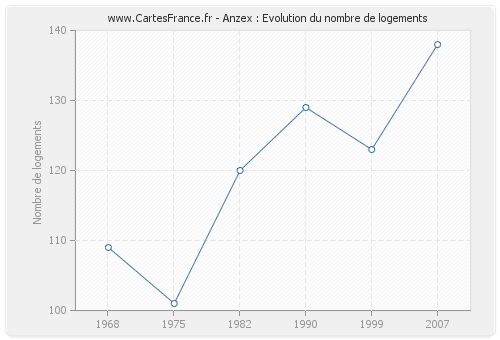 Historique du nombre de logements d'Anzex de 1968 à 2007 :