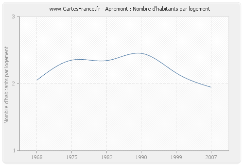 - Nombre d'habitants moyen par logement d'Apremont en 1968 : 2,06