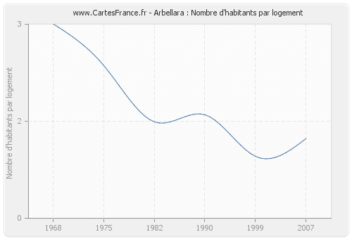 - Nombre d'habitants moyen par logement d'Arbellara en 1968 : 3,00