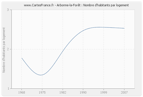 - Nombre d'habitants moyen par logement d'Arbonne-la-Forêt en 1968 : 1,78