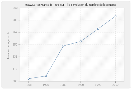 Historique du nombre de logements d'Arc-sur-Tille de 1968 à 2007 :