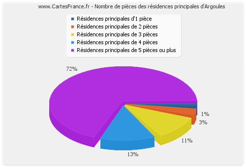 - Nombre de résidences principales d'Argoules de cinq pièces et plus : 73