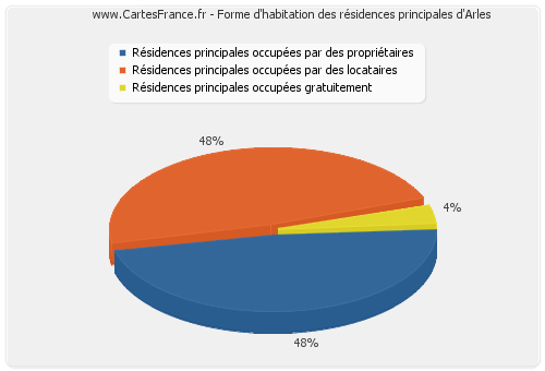 En 2007, 11 112 résidences principales d'Arles étaient occupées par des propriétaires.