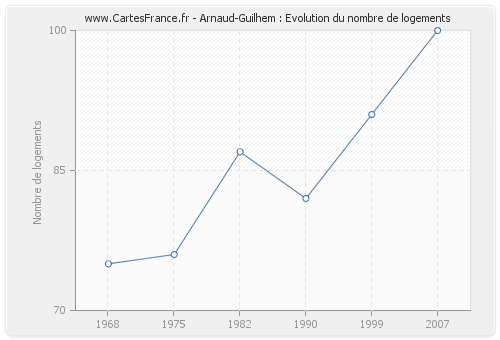 Historique du nombre de logements d'Arnaud-Guilhem de 1968 à 2007 :