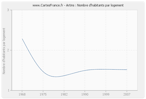 - Nombre d'habitants moyen par logement d'Artins en 2007 : 1,52