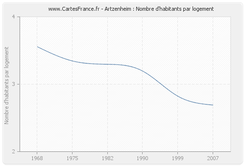 - Nombre d'habitants moyen par logement d'Artzenheim en 2007 : 2,69