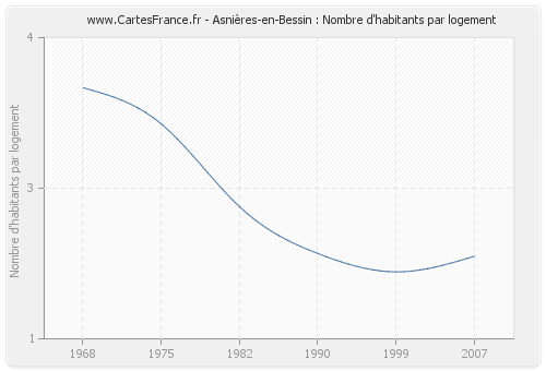 - Nombre d'habitants moyen par logement d'Asnières-en-Bessin en 2007 : 1,82