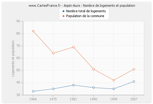 Le nombre de logements d'Aspin-Aure était de 41 en 2007, 35 en 1999, 36 en 1990, 38 en 1982, 35 en 1975 et 33 en 1968.