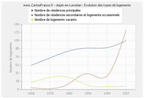 Historique du nombre de logements d'Aspin-en-Lavedan de 1968 à 2007 :