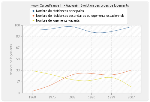 - Nombre de résidences principales d'Aubigné en 2007 : 98