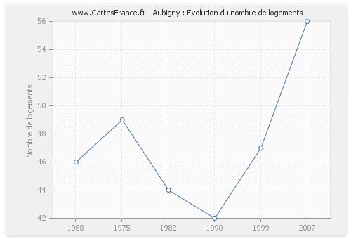 Le nombre de logements d'Aubigny était de 56 en 2007, 47 en 1999, 42 en 1990, 44 en 1982, 49 en 1975 et 46 en 1968.