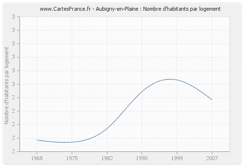 - Nombre d'habitants moyen par logement d'Aubigny-en-Plaine en 2007 : 2,38