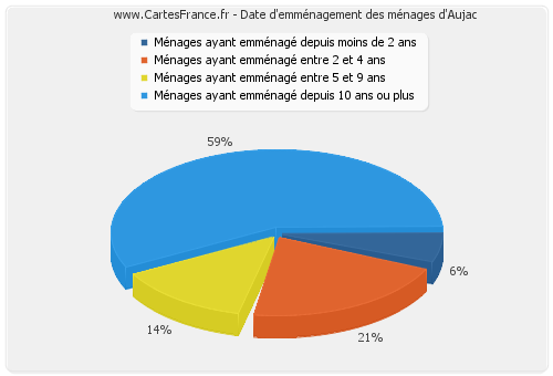 - Nombre de ménages d'Aujac ayant emménagé depuis 10 ans ou plus : 86