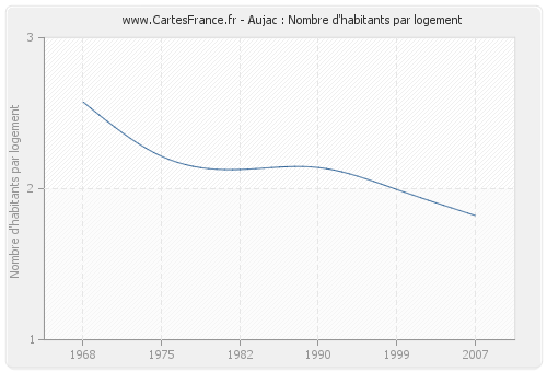 - Nombre d'habitants moyen par logement d'Aujac en 2007 : 1,82
