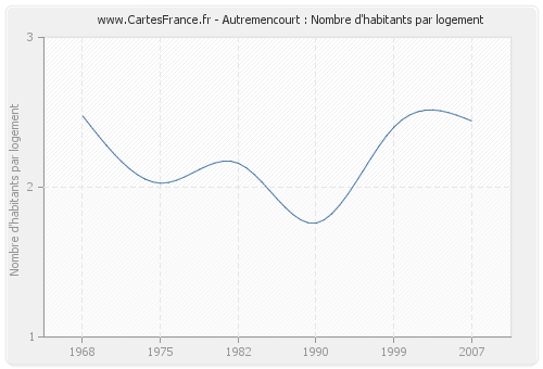 - Nombre d'habitants moyen par logement d'Autremencourt en 1975 : 2,03
