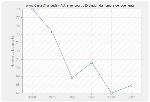 Historique du nombre de logements d'Autremencourt de 1968 à 2007 :