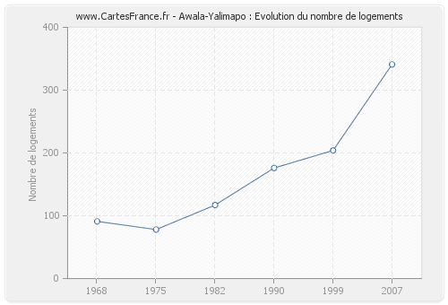 Historique du nombre de logements d'Awala-Yalimapo de 1968 à 2007 :