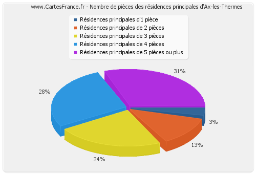 Nombre de pièces des résidences principales d'Ax-les-Thermes en 2007 :