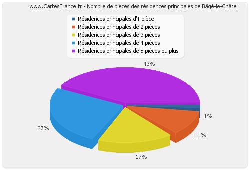 Nombre de pièces des résidences principales de Bâgé-le-Châtel en 2007 :