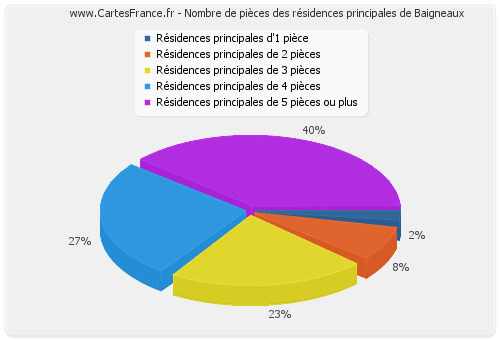 - Nombre de résidences principales de Baigneaux de cinq pièces et plus : 35