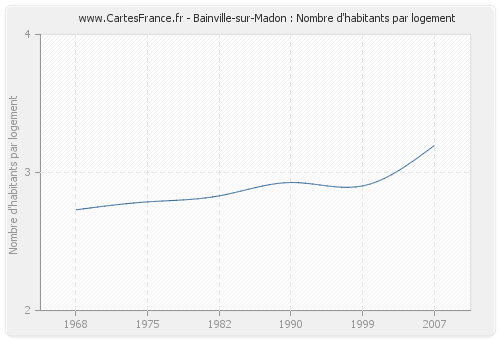 - Nombre d'habitants moyen par logement de Bainville-sur-Madon en 2007 : 3,20