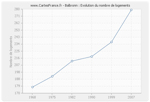 Historique du nombre de logements de Balbronn de 1968 à 2007 :