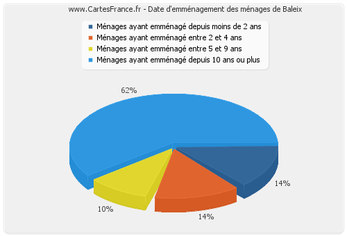 - Nombre de ménages de Baleix ayant emménagé depuis 10 ans ou plus : 31