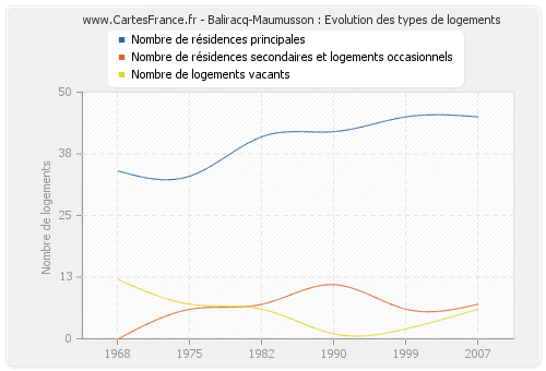 - Nombre de résidences principales de Baliracq-Maumusson en 2007 : 45