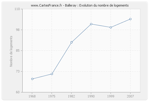 Historique du nombre de logements de Balleray de 1968 à 2007 :