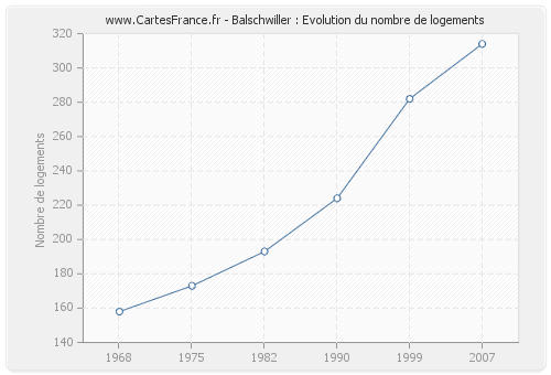 Historique du nombre de logements de Balschwiller de 1968 à 2007 :
